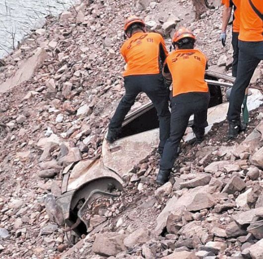 바닥 드러낸 저수지서 22년전 티코가… - 극심한 가뭄으로 바닥이 드러난 강원도 강릉 오봉저수지에서 티코 승용차가 발견됐다. 경찰은 22년 전 수몰된 것으로 추정했다. /강원도소방본부 |