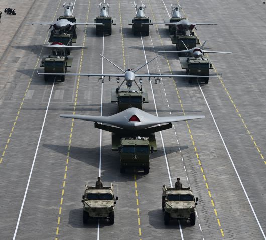 /연합뉴스지난 3일 중국 베이징에서 열린 중국 전승절 80주년 기념 열병식에서 무인 항공기를 실은 차량들이 이동하고 있다. 중국은 이날 10여 종의 육·해·공 무인 무기 체계와 드론 방어 무기를 공개했다./신화 연합뉴스 |