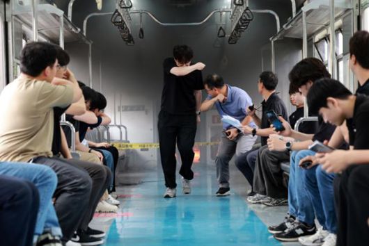 4일 경기 고양시 지축차량기지 지하철 열차 바닥에 소방관이 휘발유 2리터(L)를 뿌리고 불을 붙이자, 화염은 10초 만에 섭씨 800도 가까이 치솟았다. 열차 내부에 새까만 연기가 가득 차는 데 걸린 시간은 약 15초뿐. 열·연기 감지 센서로 기관사가 화재를 확인하자 열차 내 승객에게 대피 안내 방송을 내보냈다. 방화 후 "긴급상황"을 알리는 방송이 나오는 데까지 걸린 시간은 약 30초다. 동시에 기관사는 관제센터에 긴급상황을 타전했다.