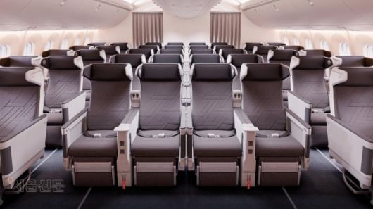 대한항공이 이코노미석 배열을 3·3·3에서 3·4·3으로 바꾼 뒤 넣은 ‘프리미엄석’의 모습. 이코노미석보다 1.5배 넓은 프리미엄석은 다음달 17일부터 인천~싱가포르 노선에 먼저 도입된다.서울신문DB |