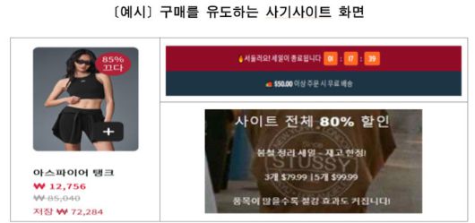해당 사이트는 '80% 세일', '당일 한정', '무료 배송' 등 표현으로 구매를 유도한다. 구매 후 소비자가 환불을 요청하면 대응하지 않거나 제품을 배송하지 않은 채 연락을 끊었다.
