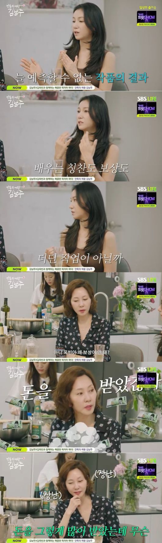 이에 김남주는 "옥빈아 왜 보상이 안 되냐. 돈을 받았잖아. 돈을 그렇게 많이 받았는데 무슨"이라고 쿨하게 돌직구를 날리며 "결과는 우리 것이 아니다. 잘 나오면 너무 기쁘고 결과 안 좋으면 심장이 내려앉는다"고 운을 뗐다.