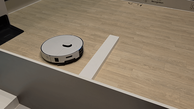 가장 눈길을 끈 것은 삼성전자가 이번 IFA에서 처음으로 공개하는 2025년 로봇청소기 '비스포크 AI 스팀' 시연이었다. 4.5㎝의 턱을 인식한 비스포크 AI 스팀은 몸을 좌우로 흔들듯 준비 자세를 취한 뒤 가뿐히 뛰어넘었다. 바닥에 떨어진 C타입 전선도 밟지 않고 자연스레 피했다. 구석에 다다르자 제품 바닥에서 원형 브러시와 물걸레를 꺼내 오염 물질을 닦아냈다.