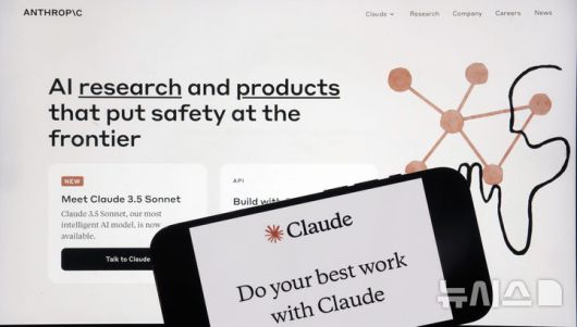 [뉴욕=AP/뉴시스] 사진은 지난해 7월 5일 미국 뉴욕에서 촬영된 앤스로픽 홈페이지와 모바일 애플리케이션 화면. 2025.08.12. |