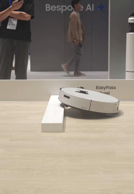 [베를린=뉴시스]삼성전자가 올해 IFA 2025에서 공개한 2025년형 로봇청소기는 최대 6㎝ 수준의 문턱을 넘을 수 있다. 삼성전자에 따르면 아직 계단을 오를 수 있는 수준은 아니지만, 아이를 키우는 가정에서 주로 설치하는 가정용 매트(높이 4㎝ 수준)를 쉽게 오르내릴 수 있도록 설계됐다. photo@newsis.com *재판매 및 DB 금지 |