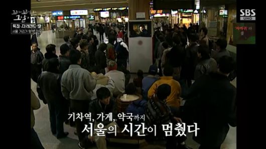 당시에 '모래시계' 때문에 생긴 유행어가 있었어. 바로 '모래시계'는 '귀가시계'라는 것. '모래시계'가 시작하는 밤 9시 50분 전에는 사람들이 TV를 보려고 다 귀가한다는 거야. 그게 어느 정도였냐. 서울 시내 교통량이 20% 이상 감소했을 정도야. 게다가 월, 화, 수, 목 주 4회 파격 편성이라, 평일 회식도 없어졌대. 그래서 식당, 술집 사장님들은 경제적으로 타격이 엄청났지만, 불만을 가질 틈이 없어. 본인들도 장사보다 그 '모래시계'를 봐야 하거든. 그야말로 신드롬이었어. 드라마가 너무 유행이다 보니, 공중목욕탕이나 사우나 안에 있던 진짜 모래시계를 가져가는 사람도 많았대.