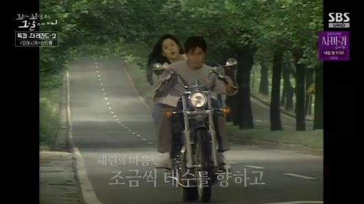 감이 좀 와? '우우우 우~우~, 우우우우~우~' 하는 멜로디가 유명한 드라마. 배우 최민수의 "이렇게 하면 널 가질 수 있을 거라고 생각했어. 넌 내 여자니까!", "나, 떨고 있니?" 하는 명대사가 있는 드라마. 오늘의 이야기, 바로 드라마 '모래시계'야.