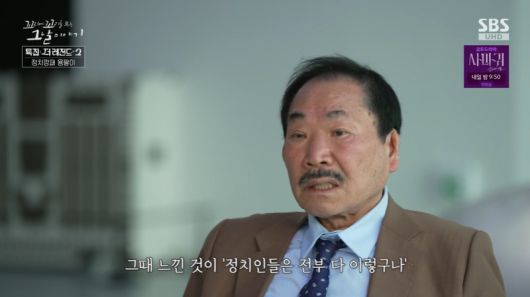 "가서 기다리면 연락을 해줄 테니 기다려라, 그래서 기다렸는데도 연락이 없어요. 전화도 안 받으니 오기가 생기잖아요. 그때 느낀 것이 '정치인들은 전부 다 이렇구나'. 끝끝내 연락이 없었어요. 그거 하고 나서 배신감이 많이 느껴졌죠."