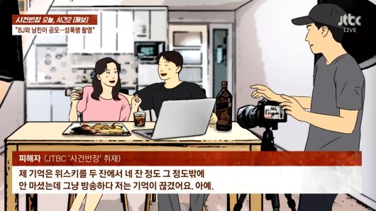피해자는 '사건반장'에 "제 기억은 위스키를 두 잔에서 네 잔 정도 밖에 안 마셨는데 방송하다가 기억이 끊겼다. 눈을 떴는데 저는 다 벗겨져 있고 BJ가 저를 강간하고 있었고 제 남자친구는 옆에 있었다. 제가 너무 놀라서 소리를 지르니까 BJ는 빠르게 밑 층으로 내려가고 동시에 동영상 카메라가 꺼지는 소리가 들렸다. 제가 밑으로 내려가서 뭐 하는 짓이냐고 하는데 아무렇지 않게 소파에서 이불을 덮고 '무슨 일이야? 뭐가?'라고 했다"고 밝히며 "성범죄가 라이브로 방송됐을 것 같아 공포스럽다"고 털어놨다.