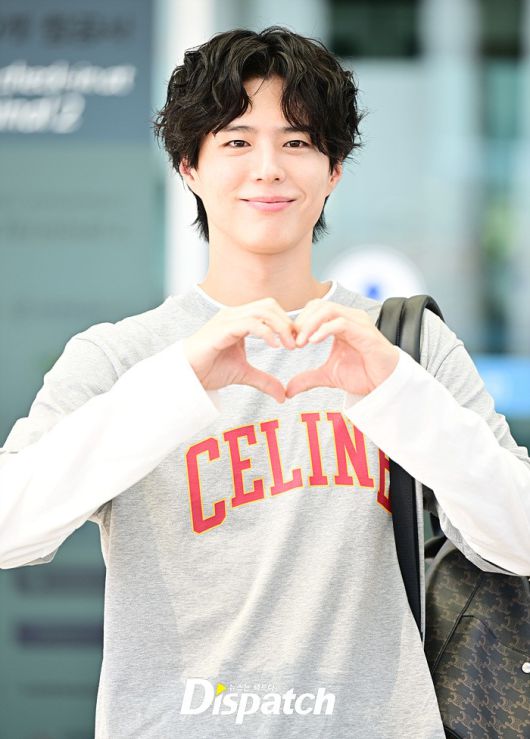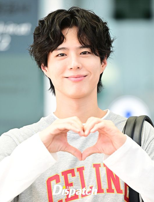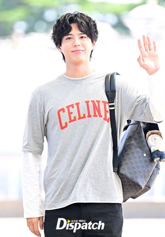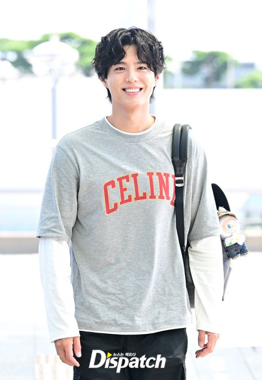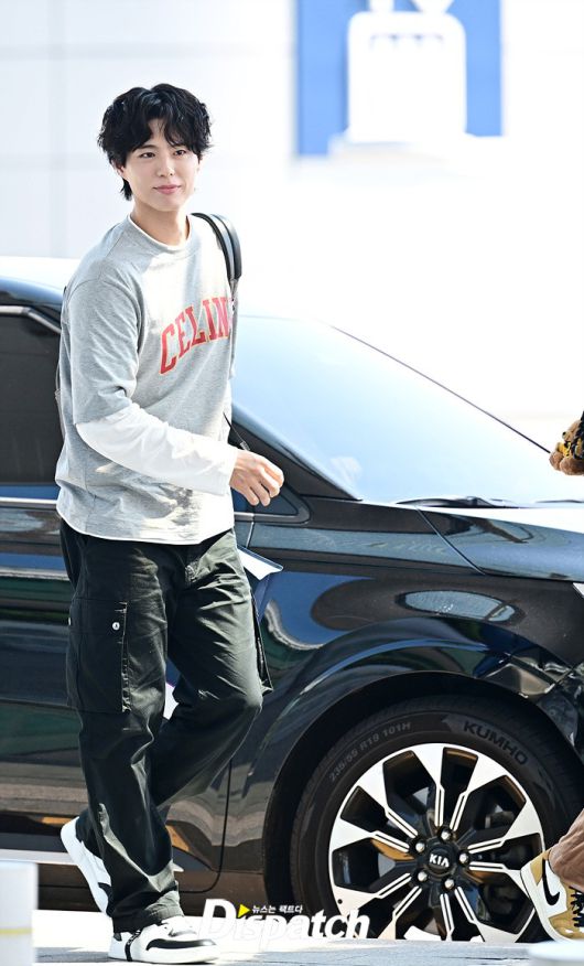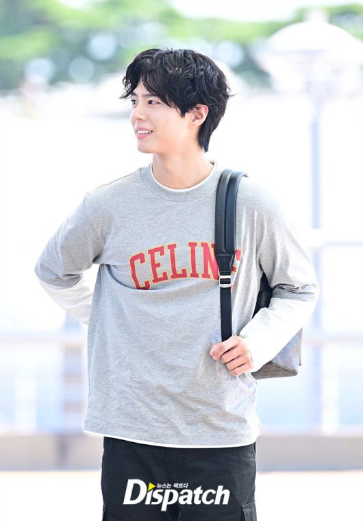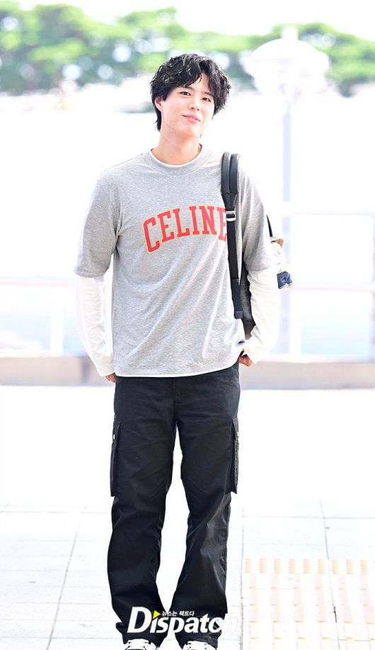 박보검은 그레이 컬러의 티셔츠와 블랙 카고팬츠로 캐주얼한 공항패션을 완성했다. 스윗한 미소와 러블리한 포즈가 돋보였다.