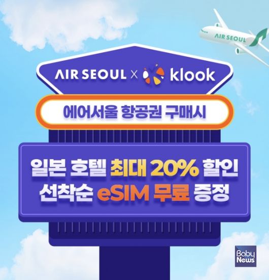 에어서울(대표이사 김중호)이 글로벌 여행 및 레저 예약 플랫폼인 '클룩(KLOOK)'과 제휴해 일본 전 노선을 대상으로 숙박 최대 20% 할인 및 eSIM 무료 증정 혜택을 제공한다고 5일 밝혔다.