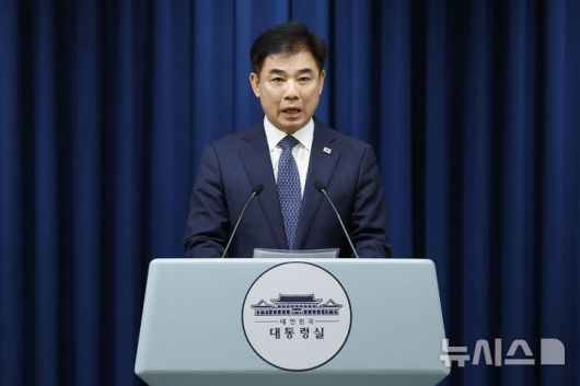 [서울=뉴시스] 최동준 기자 = 김병욱 정무비서관이 5일 서울 용산 대통령실 청사에서 오는 8일 이재명 대통령, 여야 대표와 회동 관련 브리핑을 하고 있다. 2025.09.05. photocdj@newsis.com |