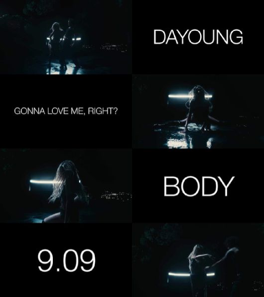 공개된 티저 영상은 짙은 어둠 속에서 자동차 헤드라이트가 다영과 댄서의 유려한 춤을 비추며 실루엣만 드러내는 연출을 담았고, 신비로운 분위기로 다영의 파격 변신을 예고하며 궁금증을 더했다. 특히, 앨범명 'gonna love me, right?'과 곡 제목으로 보이는 'body(바디)', 발매일인 9월 9일이 함께 공개되며 이목을 끌었다.