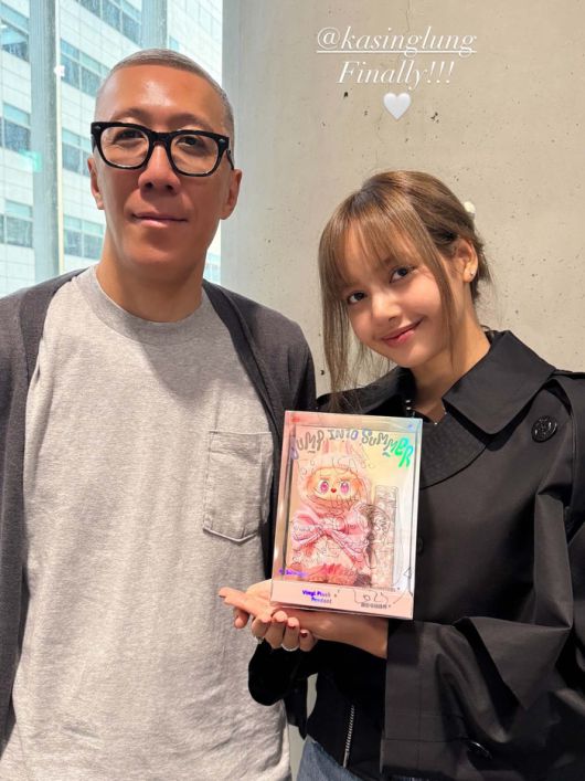 공개된 사진 속 리사는 독특한 분홍색 털이 인상적인 ‘모코코(MOCOCO)’ 라부부 피규어를 들고 케이싱 룽과 미소를 지으며 카메라를 바라보고 있다. 선물에는 케이싱 룽의 친필 드로잉과 함께 “To. Lisa!! Thank For Your Big Support!”라는 메시지가 적혀 있다.