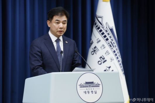 [서울=뉴시스] 최동준 기자 = 김병욱 정무비서관이 5일 서울 용산 대통령실 청사에서 오는 8일 이재명 대통령, 여야 대표와 회동 관련 브리핑을 하고 있다. 2025.09.05. photocdj@newsis.com /사진=최동준 |