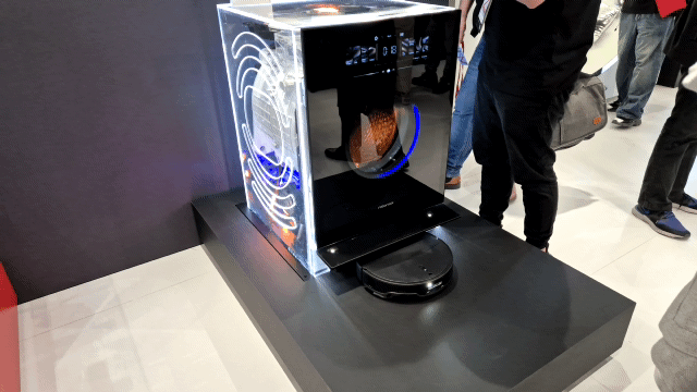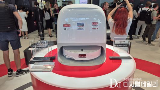 발표 직후에는 부스에 전시된 청소기, 로봇청소기, 세탁건조기, 잔디깎이 로봇청소기 등을 살펴보는 관람객들로 발딛을 틈이 없었다. 그중 관람객들이 탄성을 자아낸 건 콘셉트 제품인 '4-in-1 홈 와이드 클리닝 콤보'. 세탁건조기와 로봇청소기를 통합한 형태다.