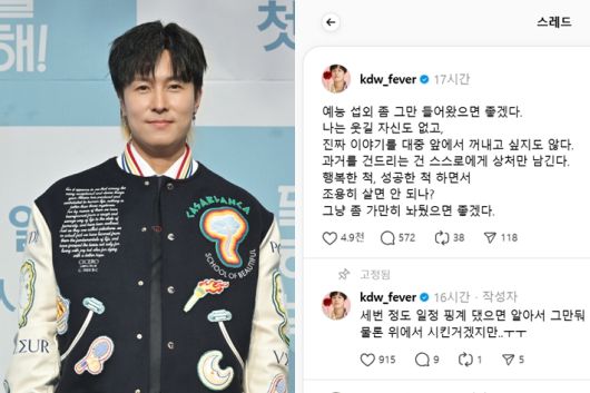 왼쪽부터 김동완, 김동완이 4일 스레드에 올린 글. KBS/김동완 스레드 |