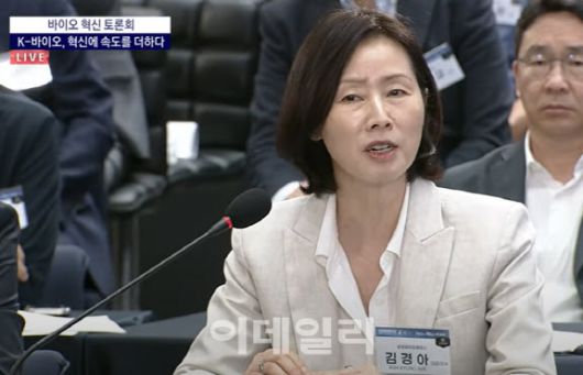 김경아 삼성바이오에피스 대표가 5일 열린 ‘K-바이오, 혁신에 속도를 더하다’ 기업 토론회에서 발언하고 있다.(사진= KTV 유튜브 채널 갈무리) |