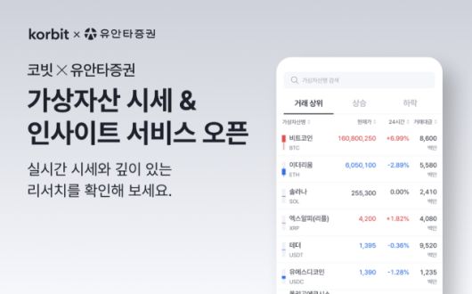 이번 협업을 통해 유안타증권 이용자들은 기존 MTS 앱에서 주요 가상화폐의 실시간 시세 정보를 확인할 수 있게 됐다. 또 앱 내에서 코빗 리서치센터가 제공하는 가상자산 관련 콘텐츠도 이용할 수 있다.