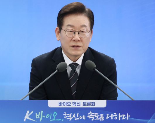 이재명 대통령이 5일 인천 송도 컨벤시아 그랜드 볼룸에서 열린 바이오 혁신 토론회에서 발언하고 있다. (대통령실통신사진기자단) 뉴시스 |