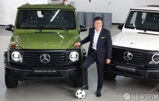 [서울=뉴스핌] 김학선 기자 = 차범근 전 축구 국가대표팀 감독이 4일 서울 서초구 메르세데스-벤츠 방배 서비스센터에서 1980년대 G-클래스를 오마주한 'G-클래스 스트롱거 댄 더 1980 에디션' 출시를 기념해 차량과 함께 포즈를 취하고 있다. 2025.09.04 yooksa@newspim.com |