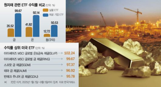 금·은·동(구리) 등 원자재 가격이 연일 사상 최고가를 갈아치우는 가운데 이를 채굴하는 기업에 투자하는 상장지수펀드(ETF) 수익률이 고공 행진 중이다. 원자재 가격 상승에 따른 채굴 기업 실적 개선이 주주환원 확대로 이어질 것이라는 분위기가 확산하면서 투자 자금이 몰렸다.