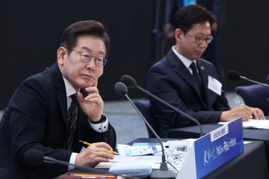 이재명 대통령이 5일 인천 송도 컨벤시아에서 열린 바이오 혁신 토론회에서 참석자들의 발언을 경청하고 있다. 대통령실사진기자단 |