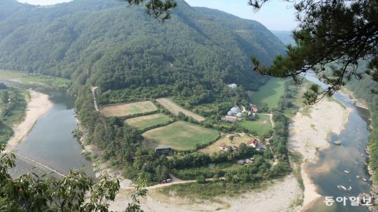 경북 안동시 도산면 가송리 학소대 정상에서 내려다본 맹개마을. 귀농한 50대 부부가 경작한 밀로 소주를 빚는 이 마을은 500여 년 전 퇴계 이황이 ‘그림 속으로 들어간다’며 즐거워하던 그 길목에 있다. 마을 오른쪽을 휘감아 흐르는 낙동강이 퇴계가 시로 읊은 미천장담(彌川張潭), ‘시내를 가득 메운 길쭉한 못’이다. |