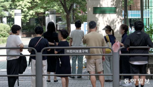 5일 오후 서울 서초구 잠원동의 한 초등학교 앞에서 학부모들이 자녀의 하교를 기다리고 있다. 전날 서울 서대문구의 한 초등학교 앞에서 초등학생을 유괴하려던 20대 남성 3명이 붙잡히면서 어린 자녀를 둔 학부모들의 불안이 커지고 있다. 송은석 기자 silverstone@donga.com |