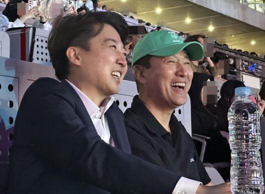 오세훈 서울시장과 이준석 개혁신당 대표가 4월 30일 서울 마포구 상암 월드컵경기장에서 열린 '서울스프링페스타 WONDER SHOW'에서 개막식을 관람하는 모습. 중앙포토 |
