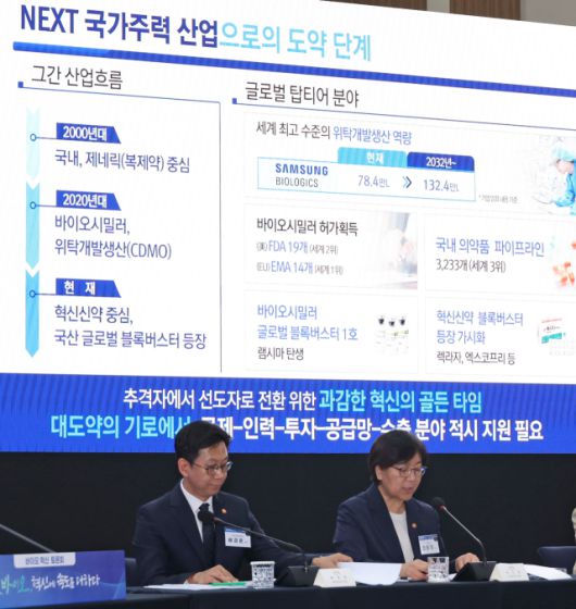 정 장관은 이어 “해외에서 높은 경쟁력을 가질 수 있도록 이중약가 제도를 확대하고 허가·평가·협상 동시 진행을 제도화해 보험 등재 기간을 150일로 단축할 것”이라고 했다. 정부는 또 위탁개발생산(CDMO) 기업의 해외 진출 지원을 위한 특별법도 제정하기로 했다.