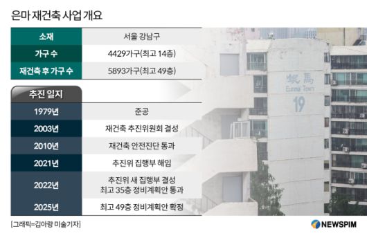 1979년 지어져 올해로 준공 47년째인 은마는 1996년부터 재건축을 추진했으나 여러 우여곡절을 겪어왔다. 2002년 시공사 선정, 2003년 추진위원회 승인을 완료했지만 안전진단과 재건축 초과이익환수제 도입 등의 문제로 현재까지 사업이 표류했다.
