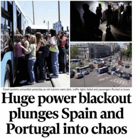 외신에 따르면 스페인 마드리드·바르셀로나, 포르투갈 리스본·포르투 등 이베리아반도 주요 도시는 한순간에 마비가 됐습니다. 지하철, 고속열차, 항공기 모두 멈췄습니다. 휴대전화, 인터넷, 금융 결제도 막혔습니다. 신호등 작동도 멈추면서 도로는 주차장을 방불케 했습니다. 상점, 사무실은 캄캄한 암흑 세계가 됐습니다. 스페인 생태전환부(Ecological Transition Minister)에 따르면 이 모든 일이 단 12초 만에 벌어졌습니다. 스페인은 당시 총 15GW, 전체 공급량의 약 60%에 달하는 전력을 상실했습니다.