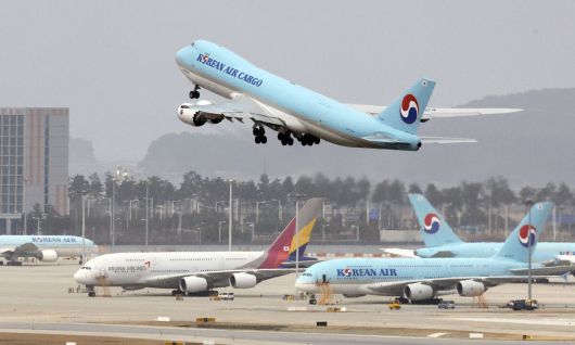 인천국제공항 전망대에서 바라본 공항 계류장 내 대한항공과 아시아나항공 모습. 뉴시스 |