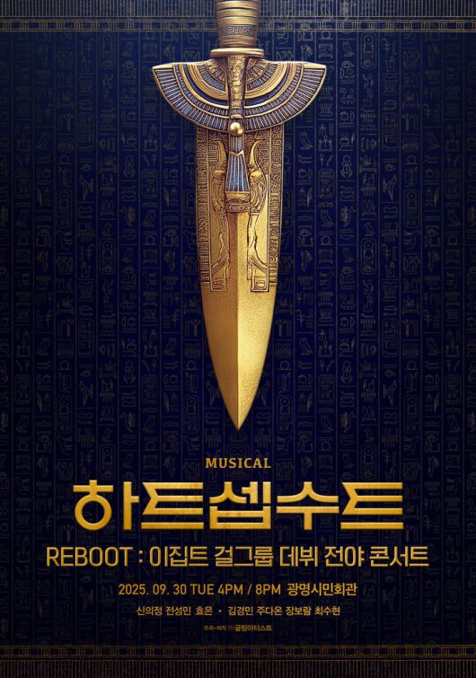 한편, 뮤지컬 '하트셉수트 REBOOT: 이집트 걸그룹 데뷔 전야 콘서트'는 오는 30일 광명시민회관에서 공연 예정이며, 티켓 예매는 오는 9일 오후 3시부터 티켓링크에서 진행된다. 공연과 관련된 소식은 ㈜글림컴퍼니 공식 SNS에서 확인할 수 있다.
