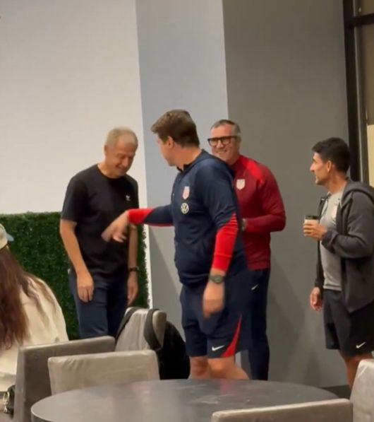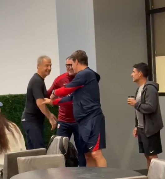 미국 축구대표팀 소식에 정통한 미국의 'USMNT Only'는 6일(한국시간) 미국 국가대표팀의 마우리시오 포체티노 감독이 위르겐 클린스만과 인사를 나누는 짧은 영상을 공개했다. 영상 속 클린스만은 포체티노 감독과 대화하며 환한 미소를 띠고 있었다.