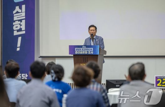 정청래 더불어민주당 대표가 6일 경기 고양시 일산서구 킨텍스에서 열린 '평당원 최고위원 선출 경선공론화 조사'에 참석해 인사말을 하고 있다. (더불어민주당 제공. 재판매 및 DB 금지) 2025.9.6/뉴스1 |