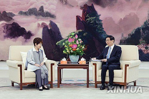 이튿날에는 중국 서열 4위인 왕후닝 전국인민정치협상회의(정협) 주석과 만나 양안(兩岸) 교류 등 문제에 대해 대화했다.