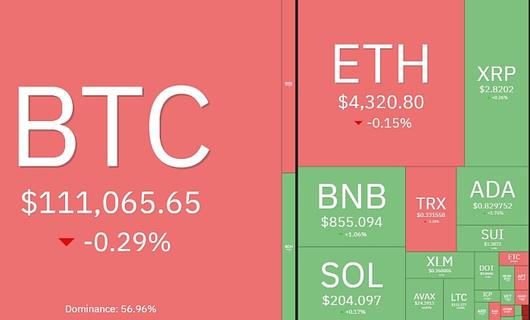 6일 오전 11시 40분 코인360을 기준으로 시가총액 1위인 비트코인(BTC)은 11민1065달러를 기록하며 전날 대비 0.29% 하락했다. 비트코인은 여전히 시장 점유율 56.96%로 압도적인 영향력을 유지하고 있으나, 최근 상승세에 따른 피로감이 반영된 것으로 풀이된다.