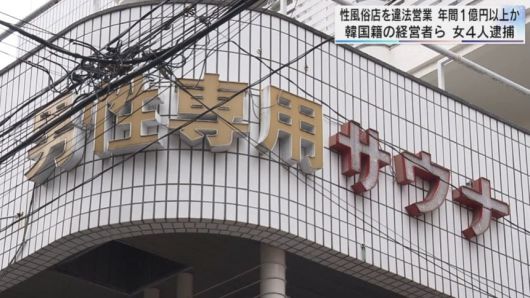 일본에서 성적 서비스를 제공하는 불법 사우나를 운영한 한국인 여성이 체포됐다.
