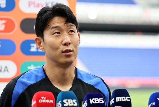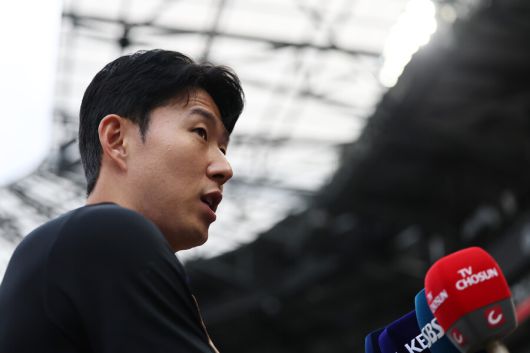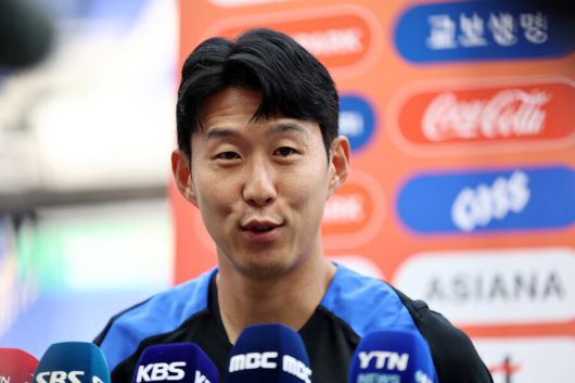 훈련 직전에는 한국 대표팀의 주장 손흥민이 취재진과 만났다. 그는 경기를 하루 앞둔 상황에서 진지한 표정으로 인터뷰에 임했다.