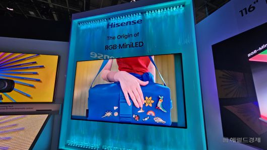 하이센스가 독일 베를린에서 열린 IFA 2025에서 전시한 RGB 미니 LED TV. 베를린=김현일 기자 |