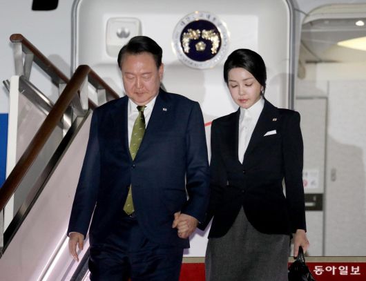 윤석열 전 대통령과 김건희 여사의 동아시아 순방 직후 귀국 모습. 송은석 기자 silverstone@donga.com |
