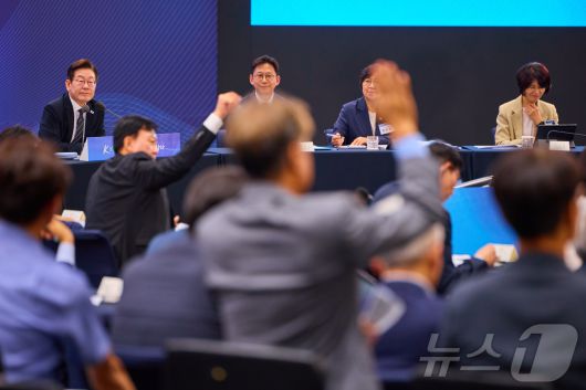 (서울=뉴스1) 이재명 기자 = 이재명 대통령이 지난 5일 인천 송도 컨벤시아 그랜드 볼룸에서 열린 '바이오 혁신 토론회'에서 참석자들에게 질문을 받고 있다. (이재명 대통령 SNS. 재판매 및 DB 금지) 2025.9.6/뉴스12expulsion@news1.krCopyright ⓒ 뉴스1. All rights reserved. 무단 전재 및 재배포, AI학습 이용 금지.