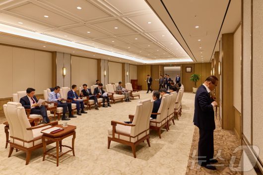 (서울=뉴스1) 이재명 기자 = 이재명 대통령이 지난 5일 서울 용산 대통령실 청사에서 티타임에 참석하고 있다. (이재명 대통령 SNS. 재판매 및 DB 금지) 2025.9.6/뉴스12expulsion@news1.krCopyright ⓒ 뉴스1. All rights reserved. 무단 전재 및 재배포, AI학습 이용 금지.