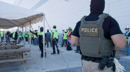 영상은 군용 차량과 헬리콥터가 현장에 들어서는 장면으로 시작한다. 이어 국토안보수사국(HSI) 마약단속국(DEA) 등 여러 기관의 합동으로 진행된 작전에서 중무장한 요원들은 전쟁터를 방불케 하며 공사 현장으로 들이닥쳤다. 현장에 있던 한 건설 노동자는 CNN과의 인터뷰에서 "마치 전쟁터 같았다"고 증언했으며 일부 노동자들은 단속을 피하려 하수 웅덩이나 환풍구 통로에 몸을 숨기기도 한 것으로 전해졌다.