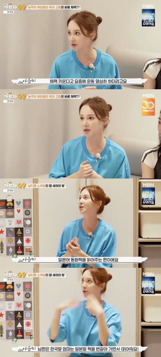 아유미는 “노산이라서 건강을 신경 쓰게 된다. 애가 20살이면 저는 60살이다”라고 말했다. 그러면서 건강 관리에 적극적이라고 밝혔다. 아유미는 딸에게 책을 자주 읽어주냐는 질문을 받고 “일본어 동화책을 읽어주는 편이다. 남편은 한국말, 저는 한국말로 번갈아가며 읽어준다”라며 이중언어로 책을 읽어준다고 밝혔다.