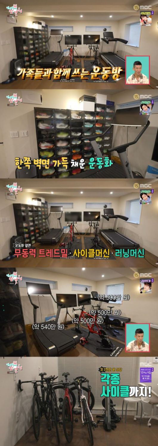 공개된 가족 운동방에는 한 쪽 벽면을 가득 채운 운동화 수십 켤레가 진열돼 관심을 끌었다. 운동화가 진열된 곳 옆에는 여러 대의 운동 기구가 다양하게 구비되어 놀라움을 자아냈다. 운동방에 놓인 무동력 트레드밀과 사이클 머신, 러닝 머신 등은 모두 약 500만원 대에 달한다고 전해졌다. 또 운동방에는 2000만원 대의 사이클과 운동 장비도 있어 헬스장을 방불케 하는 다양한 기구로 모두를 놀라게 했다.