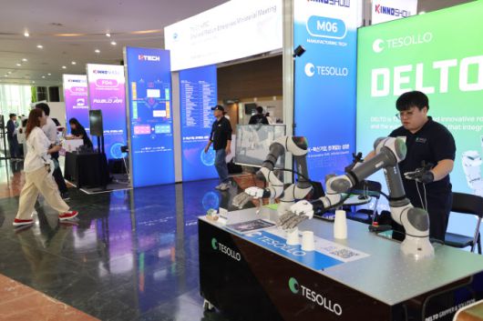 2025 APEC 중소기업 주간이 시작된 1일 서귀포시 중문동 제주국제컨벤션센터에서 열린 중소기업 기술·경영 혁신대전에서 테솔로(Tesollo) 부스 관계자가 로봇 그리퍼를 시연하고 있다.(사진=연합뉴스) |