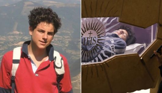 왼쪽은 카를로 아쿠티스 공식 홈페이지에 게시된 생전 모습. 오른쪽은 2006년 15세로 선종한 뒤 이탈리아 아시시 성지에 안치된 그의 시신. 출처=carloacutis.com·AP 연합뉴스 |